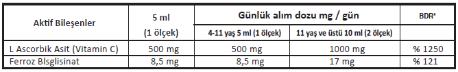 BDR **: Beslenme referans değeri 11 yaş ve üzeri ölçüsü dikkate alınarak hazırlanmıştır.